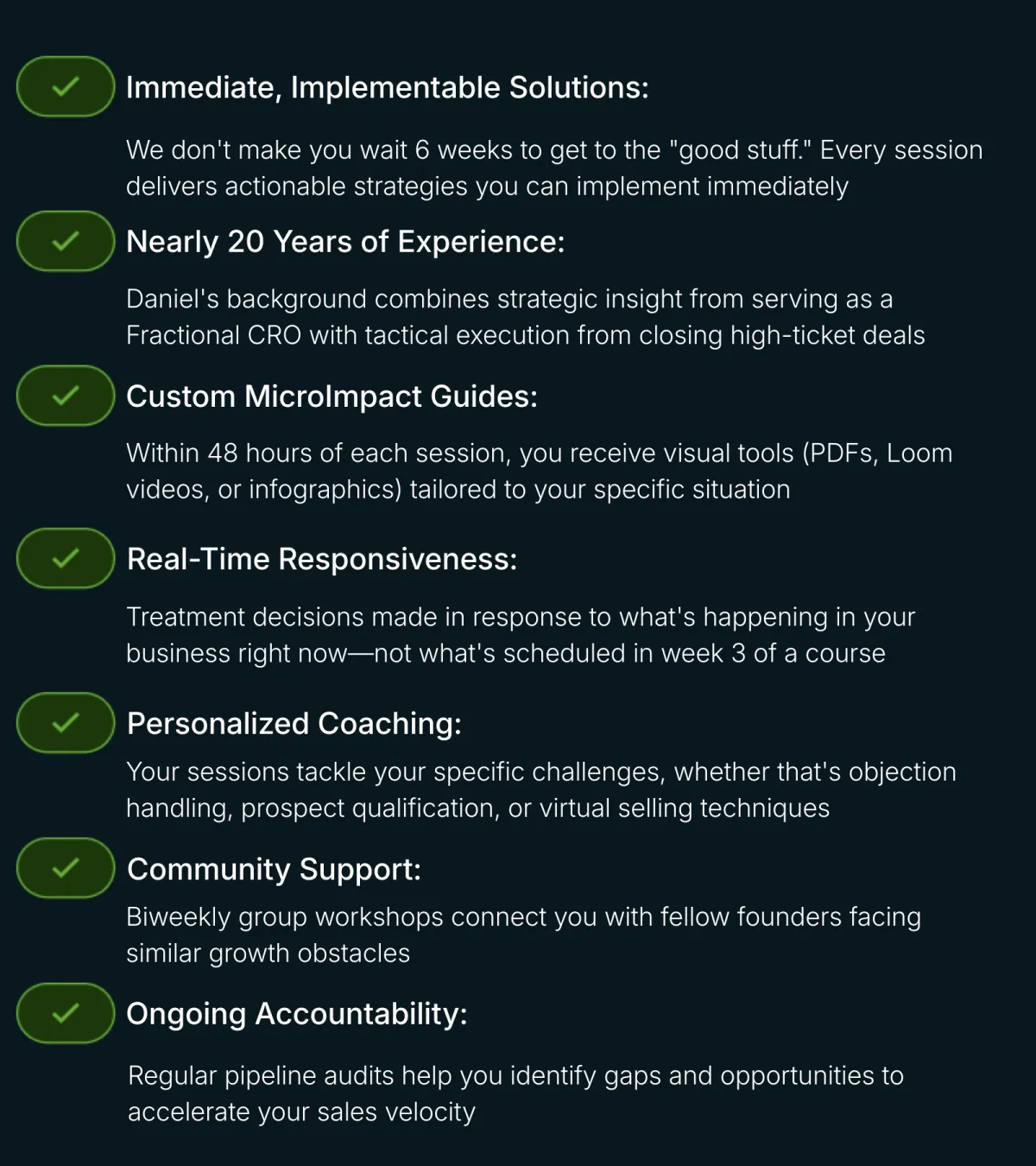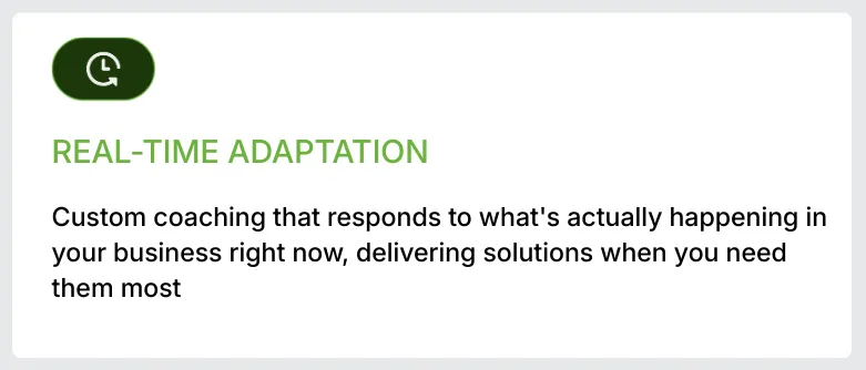 We adapt our coaching based on what's happening in your business right now—not what's scheduled in week 3 of a generic course